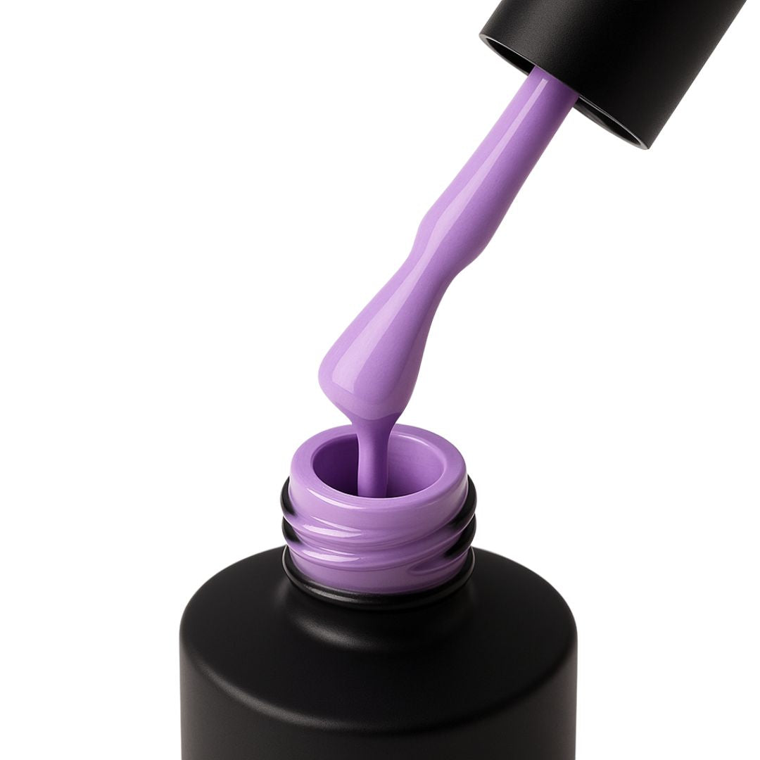 Breng een dunne laag gelpolish (color) aan, hard uit onder een UV LED-lamp (30 sec), en herhaal voor een tweede laag.